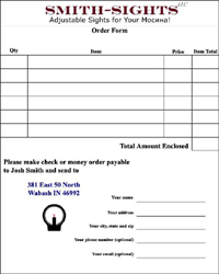 $ 34.00 USD                    You send your Mosin front sight to me, and I make it into an Adjustable Smith-Sight before shipping it back to you. Price includes one (1) sight post of your choice. Additional sight posts are $8 each. The order form and shipping information are here. |